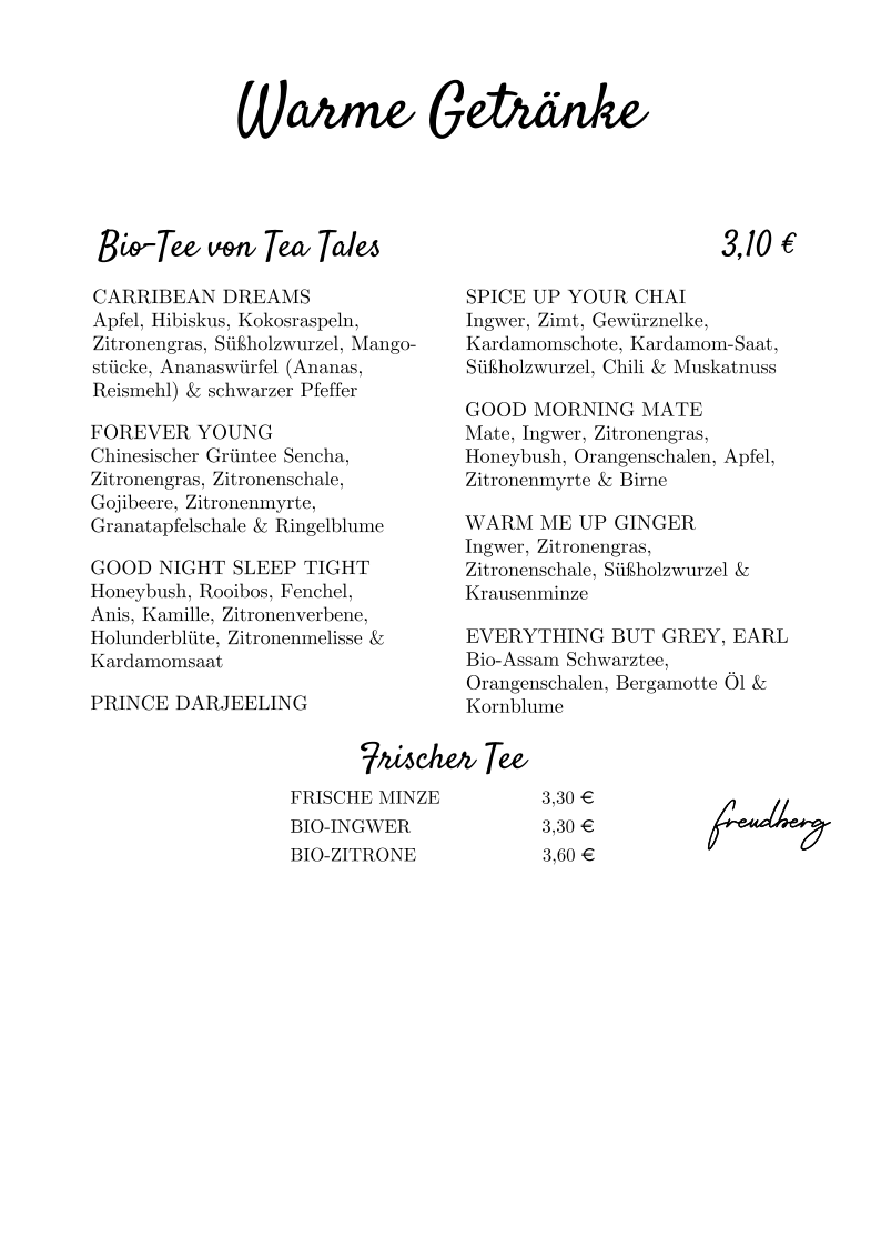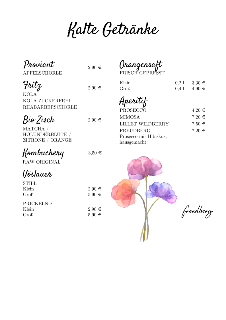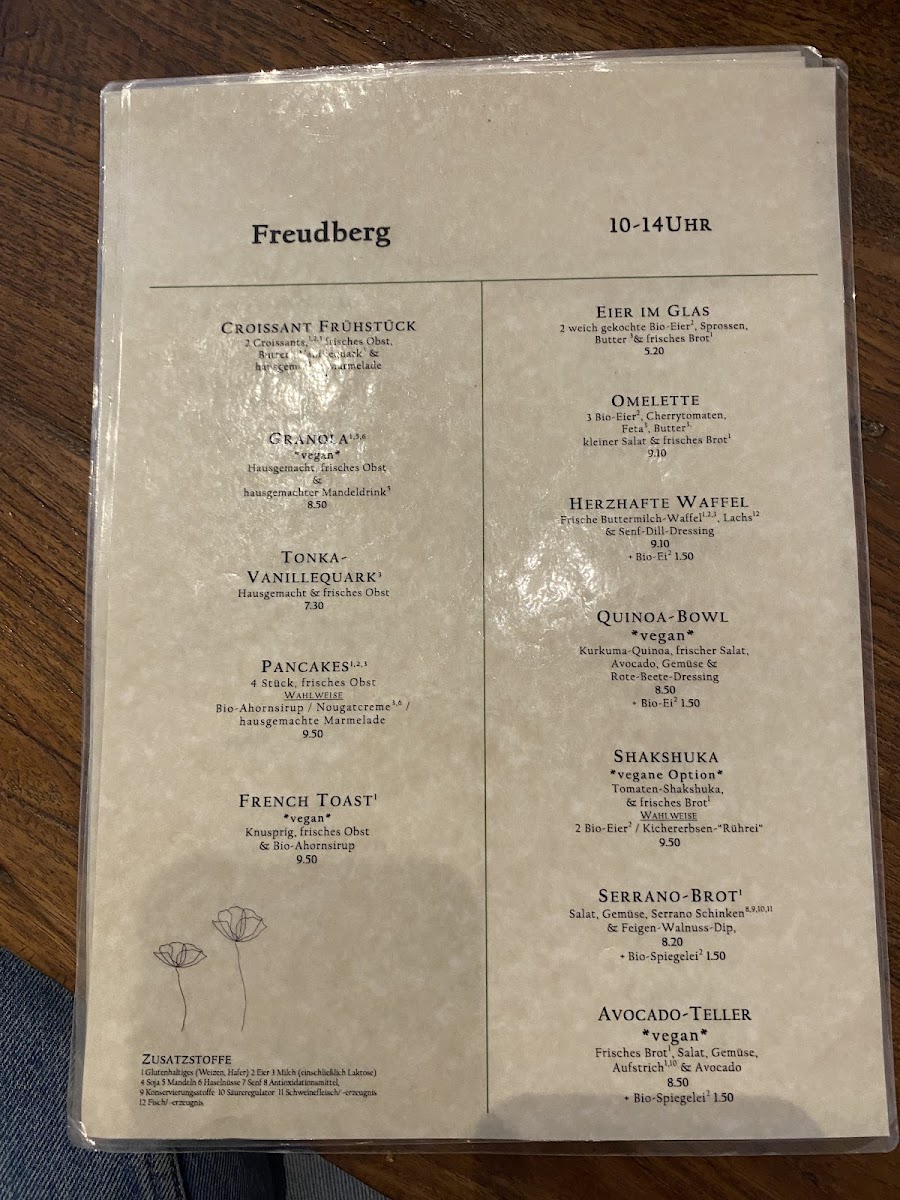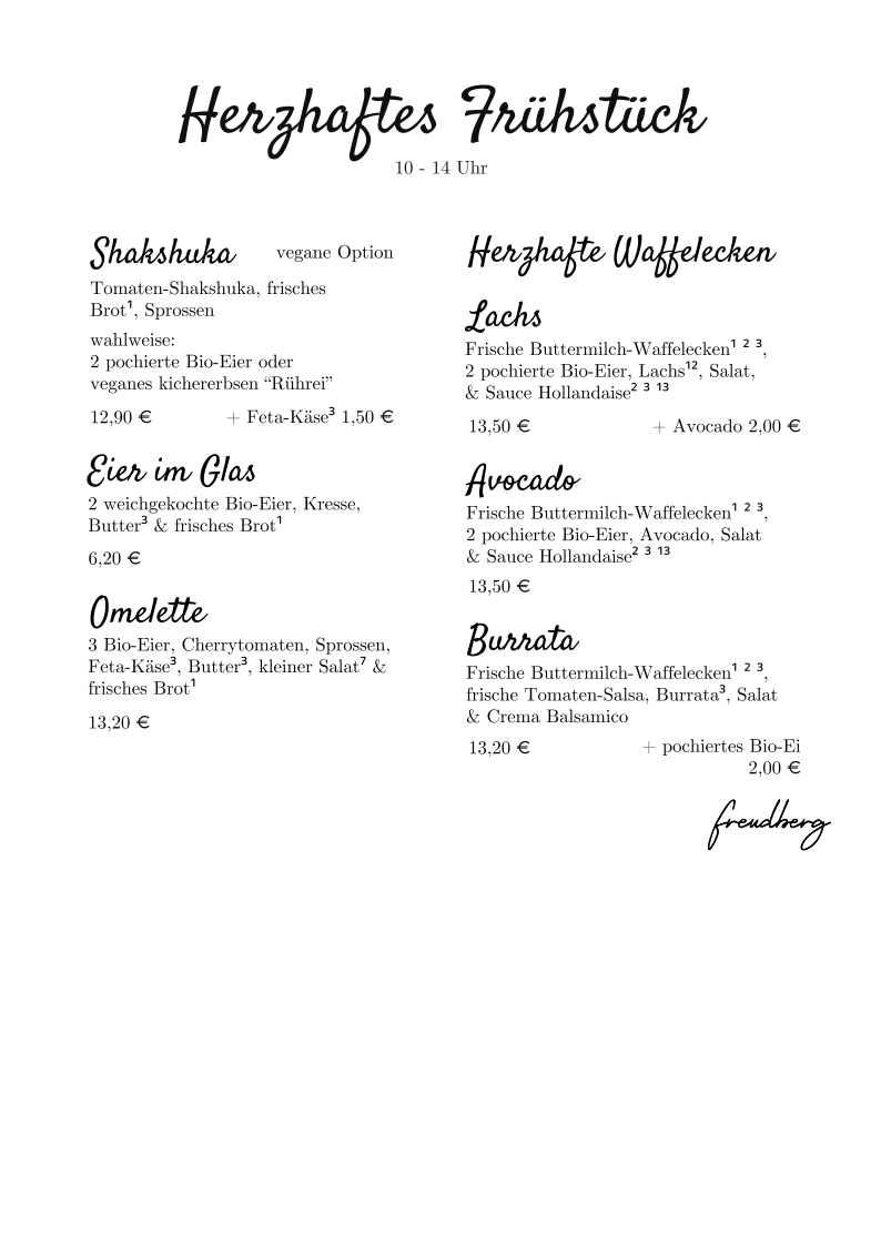 Café Freudberg Menu